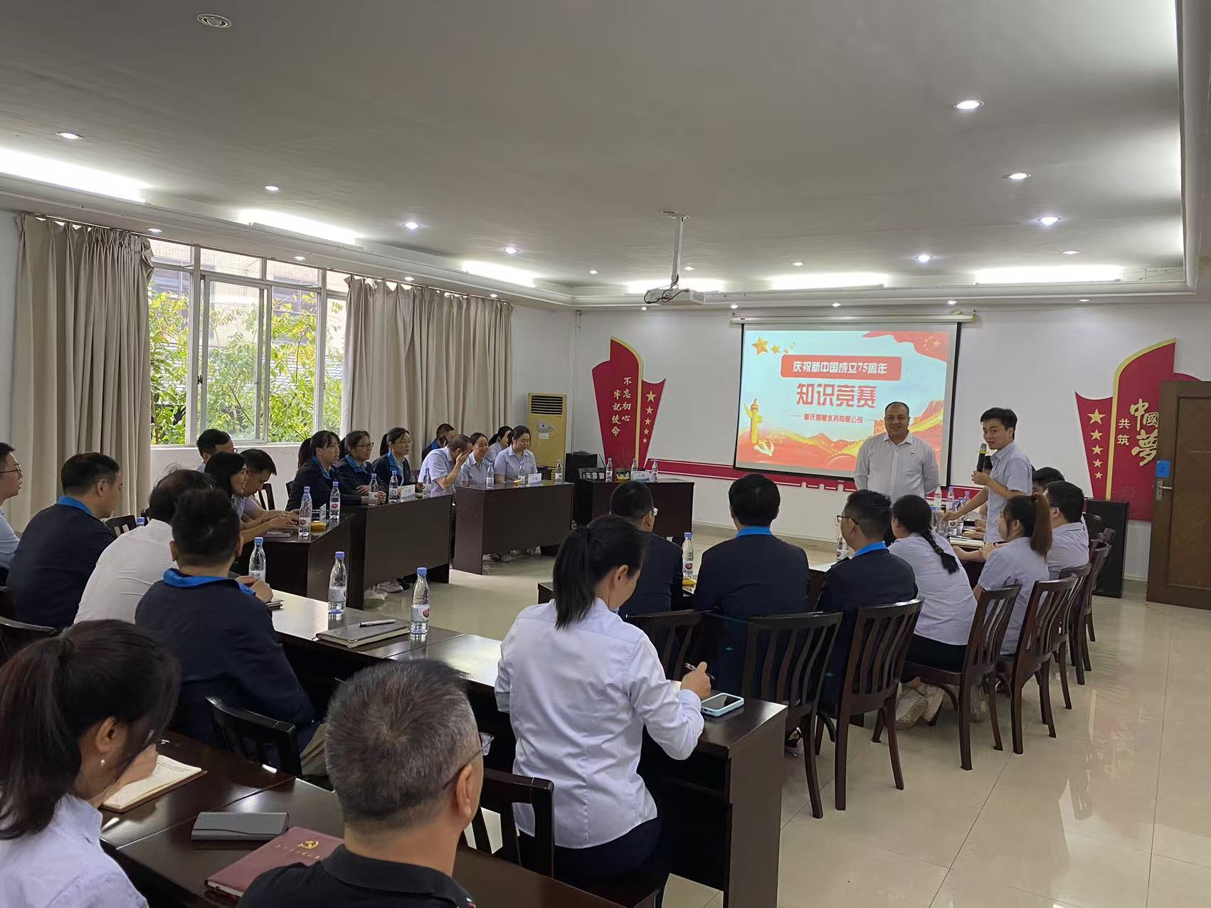 9月30日,在國慶節(jié)來臨之際,智慧水務(wù)公司組織開展“慶祝新中國成立75周年知識競賽”活動,共7支隊伍參賽,公司領(lǐng)導(dǎo)干部、黨員、團(tuán)干、工會組長等近50名觀眾現(xiàn)場觀摩
